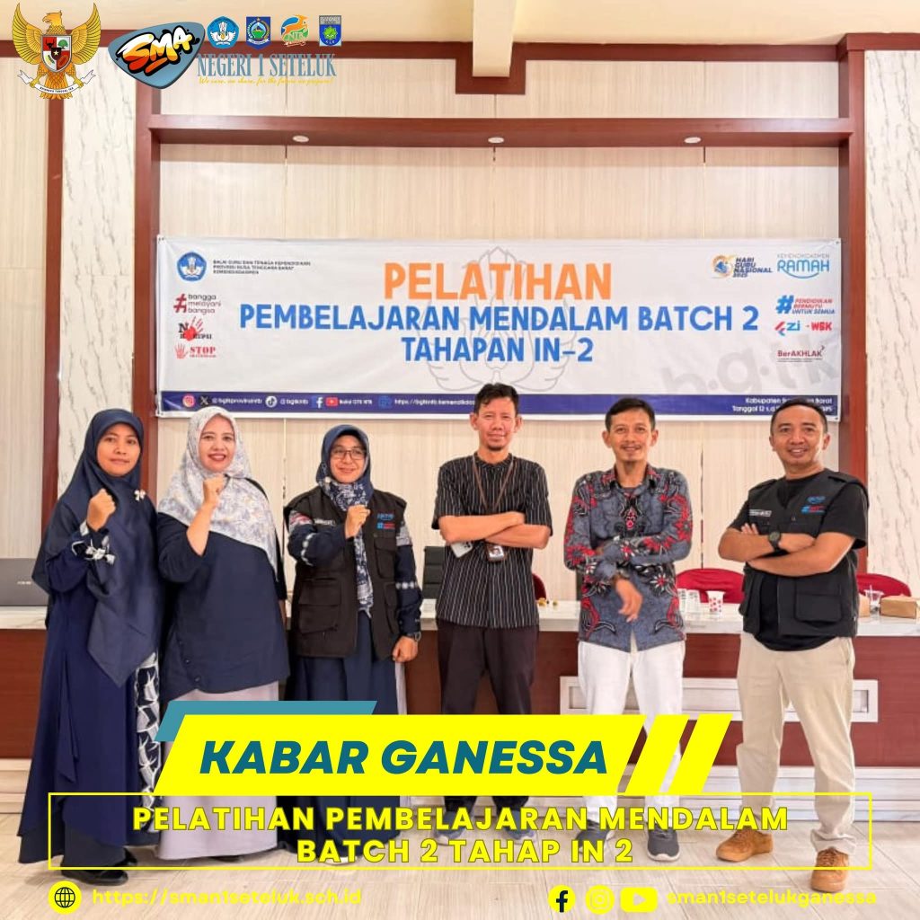 Tiga guru SMA Negeri 1 Seteluk—Ibu Hadiyah Noviany, S.Pd, Ibu Muliani, S.Pd, dan Ibu Rismala Dewi Putri, S.Pd—mengikuti Pelatihan Pembelajaran Mendalam Batch 2 (Tahap In-2) sebagai bagian dari upaya berkelanjutan untuk menghadirkan pembelajaran yang lebih bermakna di kelas.