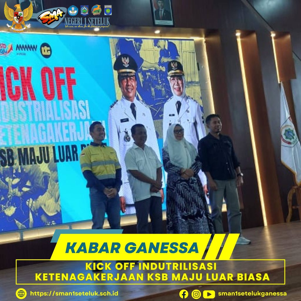 SMA Negeri 1 Seteluk turut mendukung langkah besar pembangunan daerah melalui kegiatan Kick Off Industrialisasi Ketenagakerjaan dalam Program KSB Maju Luar Biasa. Pada kesempatan ini, Ibu Kepala SMA Negeri 1 Seteluk, Warli Fatriani, S.Pt, hadir sebagai bentuk komitmen dunia pendidikan untuk berjalan seiring dengan perkembangan industri dan dunia kerja.